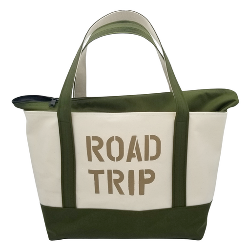Original price $90.00 - Original price $90.00Original price$90.00$90.00 - $90.00Current price $90.00| /Take it on the "ROAD TRIP" design featured on our Heavy Weight Canvas Maine Made Tote Bag with an expandable zip top. Moss Green & Natural Hea...